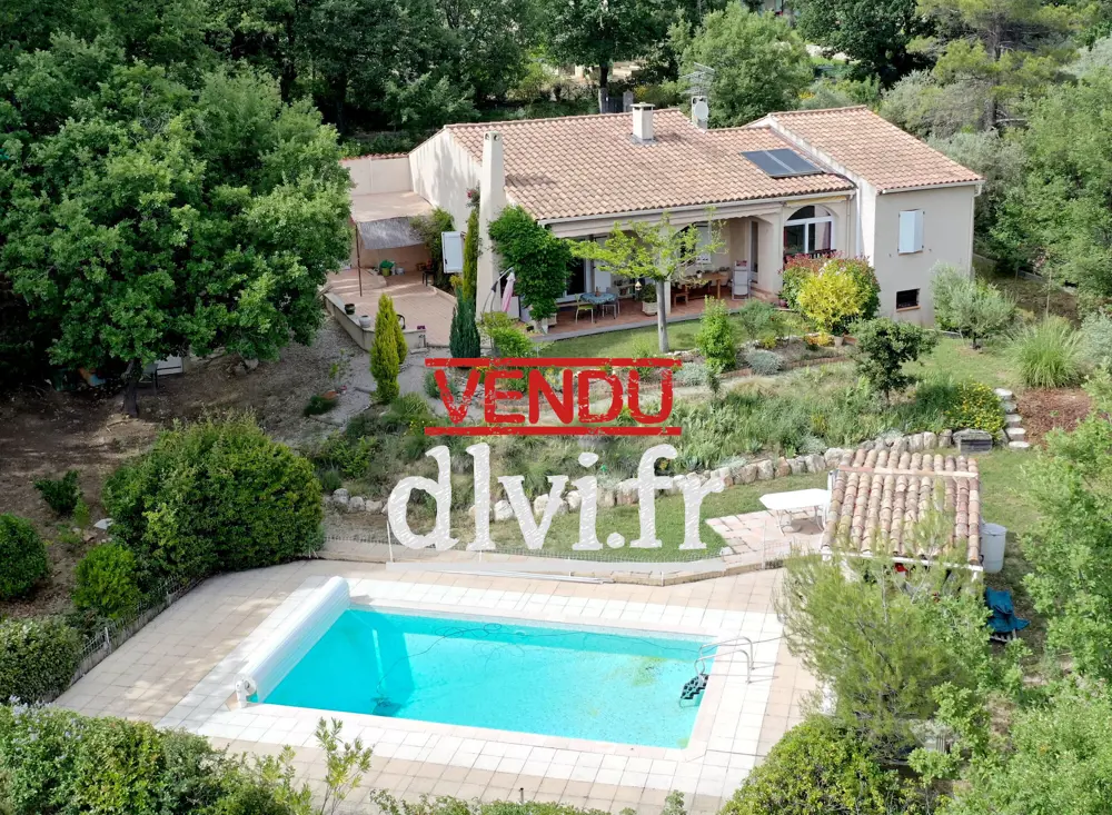 Au calme, sur les hauteurs de Pierrevert, charmante villa de 1991 comprenant 133m² utiles de plain-pied (5 pièces) + sous-sol aménagé de 33 m² (buanderie/salle d'eau/grande pièce) + garage (23 m²) + atelier (9 m²) + cave/rangement (23 m²) + abri bois + abri de jardin + piscine chauffée + pool house + local technique piscine. Edifiée sur un terrain arboré de 3650m² entièrement clôturé. Au calme, aucun vis à vis et beaucoup de verdure.